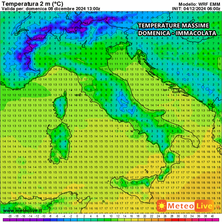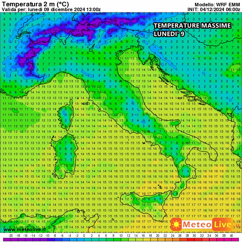 Le massime di domenica sono in effetti ancora abbastanza alte sul Meridione, con punte di oltre 16-17°C su Calabria e Sicilia, per merito dei venti tiepidi di libeccio.