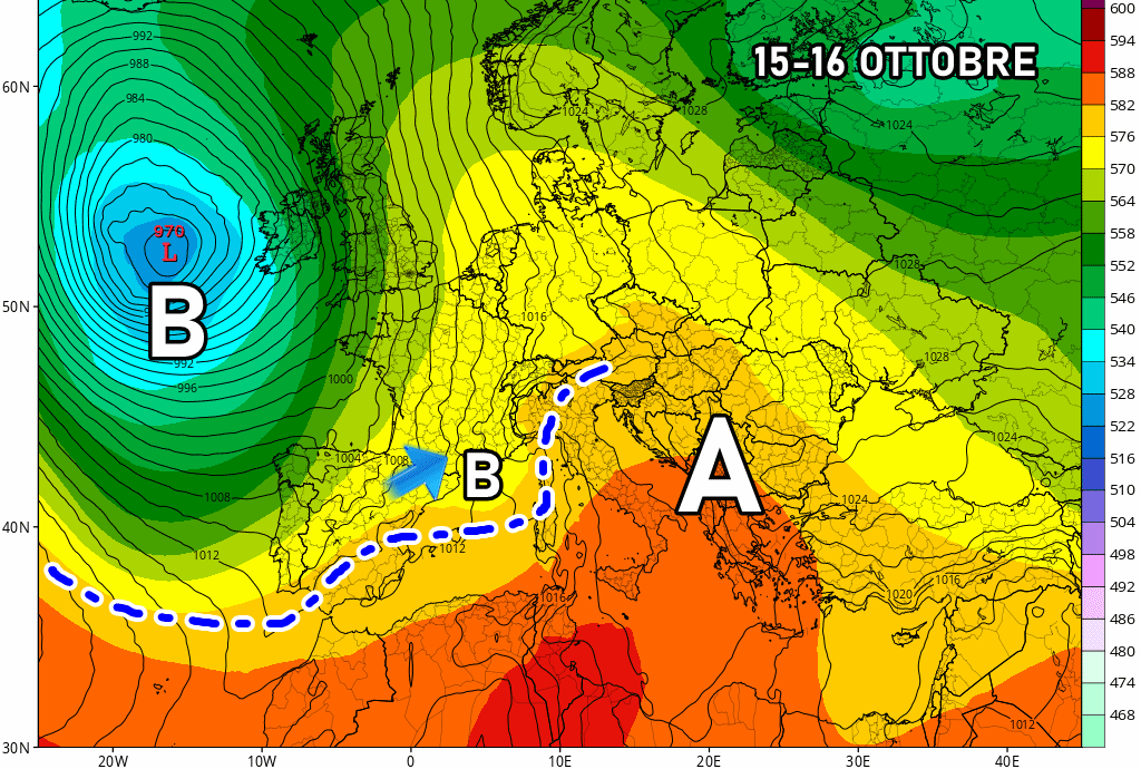 Questa evoluzione, tuttavia, non è ancora una certezza! Il modello europeo ECMWF non concorda col ritorno delle piogge al Nordovest, poiché l’anticiclone potrebbe rivelarsi un po’ più ostico e persistente almeno fino al 17 Ottobre!
