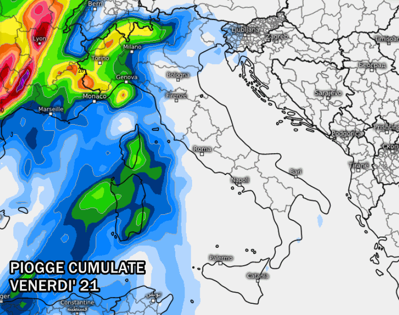 Il cambiamento avrà inizio nella giornata di venerdì 21 marzo, quando si prevede l’arrivo di un fronte temporalesco sul Nord Italia, a cominciare da Liguria, Piemonte e Valle d’Aosta, dove sono attese piogge e temporali intensi, con accumuli pluviometrici che potrebbero superare i 50 mm in breve tempo.