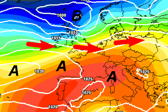 Ieri abbiamo accennato a due azioni concomitanti che rafforzeranno la figura stabilizzante sul Mediterraneo: quella africana che agirà in quota, mentre al suolo avremo la distensione del braccio orientale dell’alta pressione delle Azzorre; una doppia azione che si rifletterà sui termometri, facendoli lievitare su valori tipici di metà giugno.