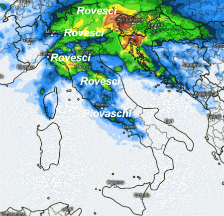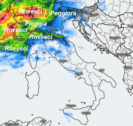 Questa invece è la sommatoria delle piogge attese in Italia nell’arco della giornata di sabato 22 ottobre.