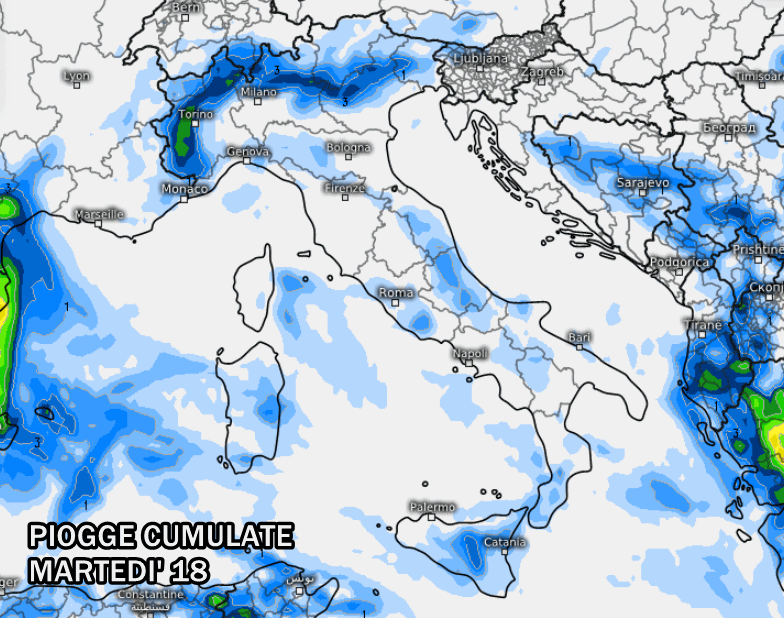 Nella giornata di martedì, ultime note instabili sul medio-basso Adriatico e qualche sporadica nevicata sulle Prealpi, principalmente a quote collinari. Si tratterà di episodi nevosi legati al fenomeno dello stau, e quindi presenti segnatamente a ridosso dei monti. Per il resto, il tempo sarà molto più asciutto, seppur piuttosto freddo, soprattutto durante le ore notturne.