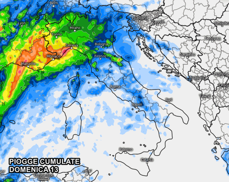 Non si escludono locali violenti temporali, in grado di rilasciare accumuli molto più abbondanti rispetto a quelli previsti attualmente, che – ricordiamo – risultano come mere stime indicative.