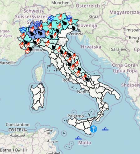 Questo il bollettino meteo della Protezione Civile: