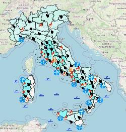 Venti: forti a prevalente componente meridionale su tutte le regioni del Sud e sul Molise, dai quadranti occidentali su Sardegna e settori costieri tirrenici di Lazio e Toscana meridionale, dai quadranti settentrionali sulla Liguria.