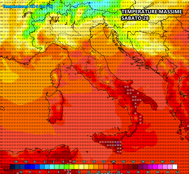 Sabato 28 la colonnina di mercurio potrebbe sfiorare i 37°C nel catanese, mentre sul resto del sud si prevedono picchi di 32-33°C. Al centro Italia le temperature saranno più basse, ma comunque superiori alle medie del periodo.
