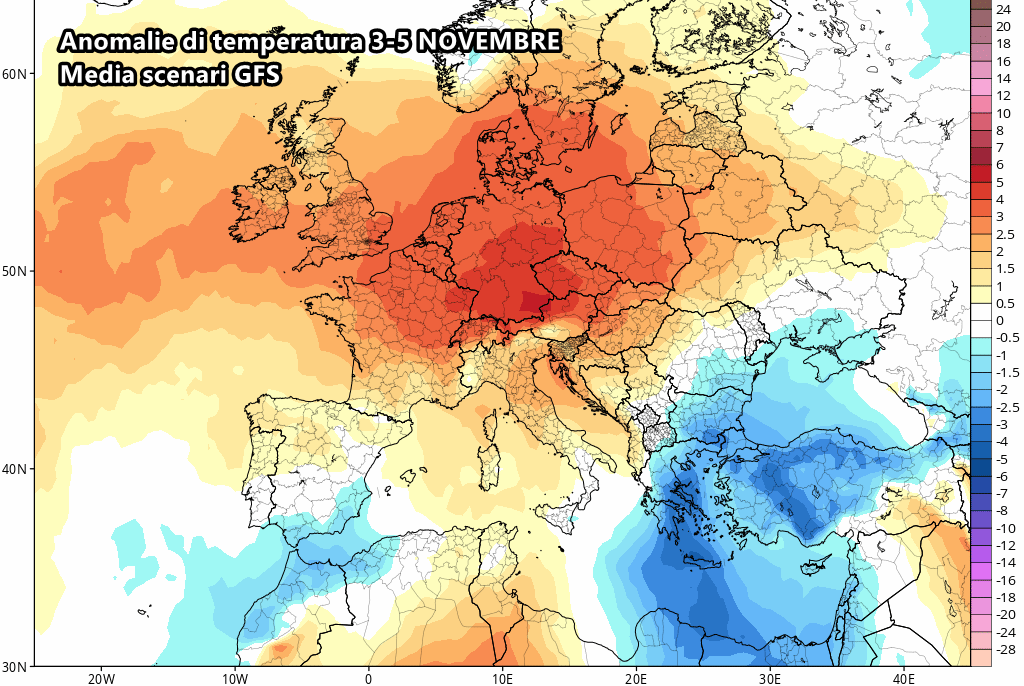 Anche le temperature risentirebbero inevitabilmente dell’anticiclone disteso su più di mezza Europa. Le anomalie più pesanti al momento sono previste tra Francia, Germania e Polonia:
