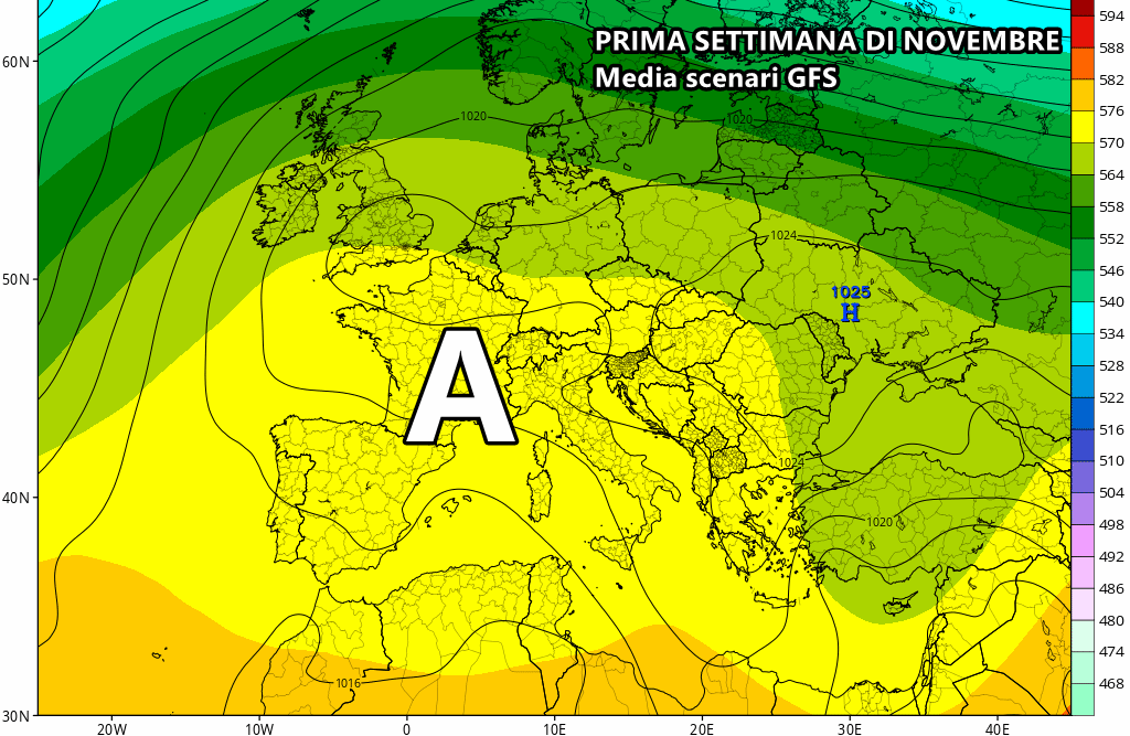 Anche la media degli scenari di GFS insiste sull’arrivo del vasto anticiclone sull’Italia, andando a sbarrare totalmente la strada alle perturbazioni atlantiche. Sarebbe senz’altro un anticiclone necessario e benvenuto dopo tanti nubifragi ed eventi alluvionali al nord.