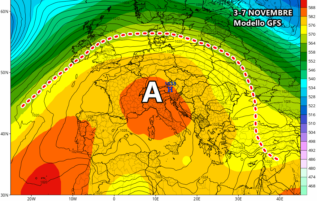 L’ipotesi del freddo precoce ad inizio Novembre è tramontana definitivamente: ce lo mostrano chiaramente i principali centri di calcolo che optano per il perentorio ritorno dell’anticiclone su mezza Europa. Il freddo artico, invece, resterà confinato tra Scandinavia ed est Europa.