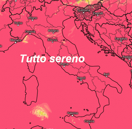 Sul fronte meteorologico per oggi ci sarà davvero poco da dire. Vi mostriamo il soleggiamento previsto in Italia tra le 9 e le 15: