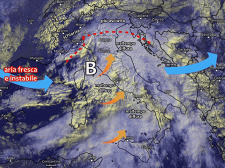 Migliora gradualmente in Sardegna già dalla tarda mattina, mentre la Sicilia vedrà un rapido guasto solo tra pomeriggio e prime ore della sera. Più stabile il tempo al nord dove avanzeranno schiarite sempre più ampie a partire da ovest.
