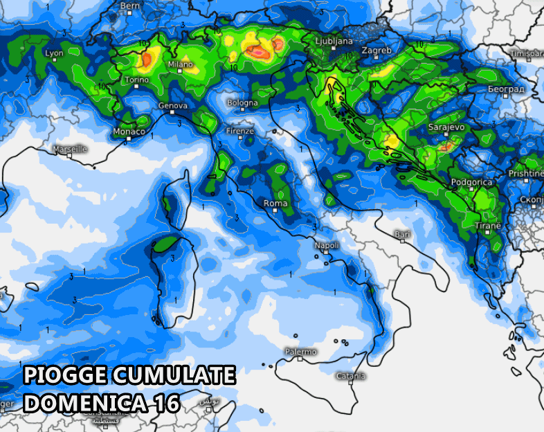 Anche domenica sarà una giornata piuttosto turbolenta e instabile al Centro e al Nord, sebbene i fenomeni risulteranno un po’ più irregolari rispetto al giorno precedente. Al Sud Italia, invece, sono attese poche piogge, eccezion fatta per qualche temporale di passaggio tra domenica sera e lunedì.