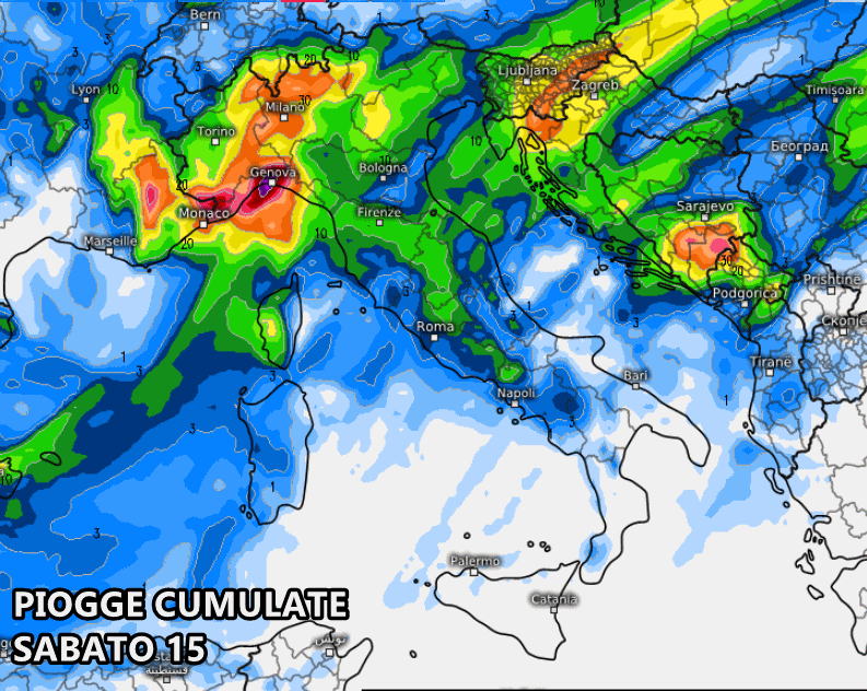 Questo brusco calo delle temperature non passerà inosservato: al contrario, produrrà altri temporali, grandinate e raffiche di vento, soprattutto al Centro e al Nord Italia. Nella giornata di sabato si prevede un severo guasto meteorologico su gran parte del Nord, in particolare sul Nord-Ovest, dove sono attesi numerosi acquazzoni e temporali localmente violenti, con possibili nubifragi e accumuli pluviometrici superiori ai 60-70 mm in breve tempo.