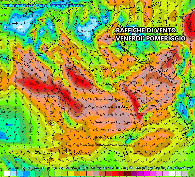 Le zone più a rischio saranno Toscana, Appennino romagnolo e Marche settentrionali, perugino, dove si prevedono raffiche di libeccio superiori ai 120-130 km/h in montagna, fino a 100-110 km/h in pianura.