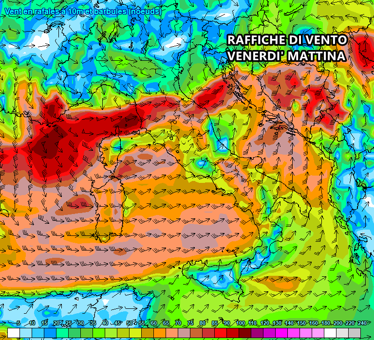 Entro il pomeriggio le folate di vento più forti transiteranno sul Meridione: in particolare sull’Appennino meridionale spiccano raffiche di vento superiori ai 100-110 km/h. Ancora venti tempestosi su Sardegna settentrionale e le coste di Toscana e Lazio. Questi fortissimi venti renderanno il mar Tirreno grosso o addirittura molto grosso, con onde superiori ai 5-6 metri.