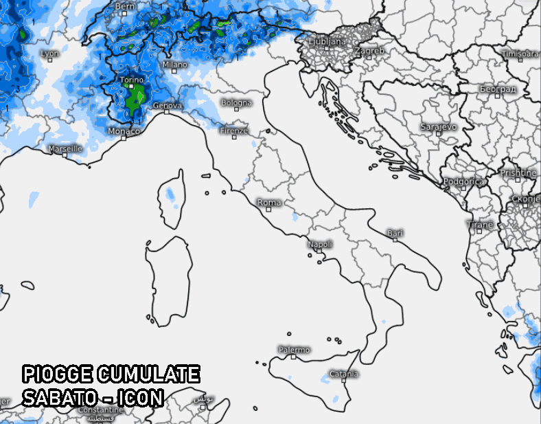 I modelli però al momento non riescono ancora ad identificare le aree nelle quali saranno più probabili, infatti alcuni modelli a scala limitata li collocano più verso il Triveneto, mentre secondo il modello ICON Il rischio di fenomeni più forti riguarderebbe essenzialmente il Piemonte tra pomeriggio e sera di sabato: