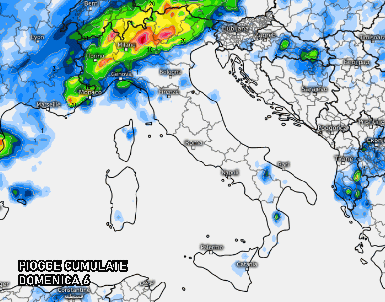 Notevole l’instabilità prevista nel corso di domenica, quando molti territori del Nord potrebbero fare i conti con nubifragi e soprattutto grandinate con chicchi di medie o grosse dimensioni. Questi temporali saranno più frequenti su Alpi, Prealpi e i settori a nord del Po, ma qualche intenso temporale potrebbe attraversare anche Basso Piemonte, Oltrepò Pavese, Liguria e l’Emilia Romagna.
