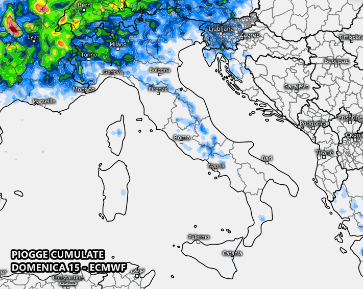 Nella giornata di domenica 15 giugno i temporali prenderanno vita su tanti territori del nord, specie su quelli montuosi e collinari. Entro sera/tarda sera entrerà in scena anche la Val Padana: nubi cumuliformi si svilupperanno con notevole frequenza, dando luogo a fulmini, tuoni, forti acquazzoni, grandinate e colpi di vento. Il modello ECMWF (mappa in alto) mostra una domenica instabile specie su Piemonte, Valle d’Aosta, Lombardia e Trentino Alto Adige.