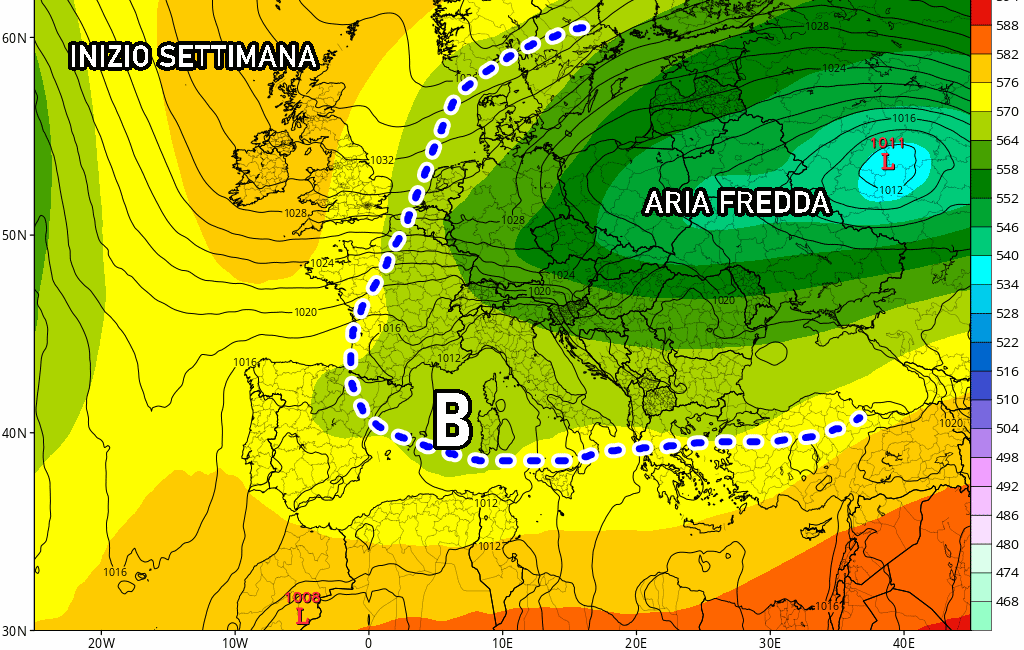 A partire da metà della prossima settimana, l’alta pressione delle Azzorre tenderà gradualmente a perdere colpi anche sul Centro-Nord, favorendo l’ingresso di correnti più fredde dall’est Europa. Al momento pare che questo fiume d’aria fredda possa rivelarsi particolarmente secco e povero di precipitazioni, ragion per cui andremo incontro principalmente a un calo sostanzioso delle temperature, sia minime che massime, ma in condizioni di tempo stabile e sereno.