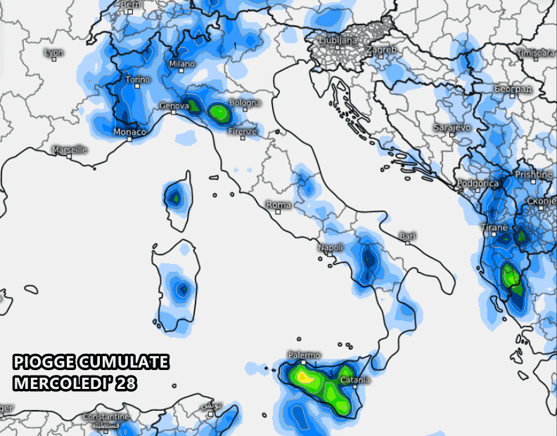 Mercoledì 28 l’instabilità sarà meno diffusa, presente principalmente in Sicilia e a sprazzi sul Nordovest.