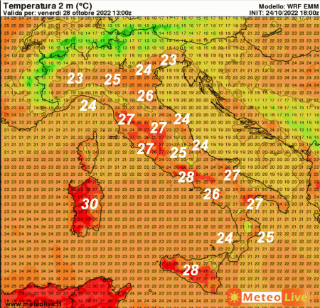 Queste invece sono le temperature previste per le ore 15 di venerdi 28 ottobre: