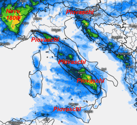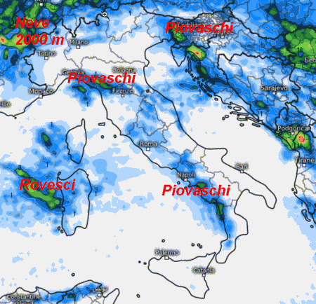 Tra l’alta Val d’Aosta e la Val d’Ossola andranno in scena precipitazioni che dai settori confinali potrebbero bagnare anche parte del nostri versanti, con neve oltre i 1800-2000 metriPiovaschi sparsi si attiveranno su gran parte delle regioni tirreniche, in modo particolare sulla Toscana, il basso Lazio, la Campania e la Calabria Tirrenica. Qualche piovasco potrebbe agire anche sul Friuli, la Liguria di Levante e la Sicilia per il resto tempo mite ed asciutto con ventilazione a tratti sostenuta da ovest.