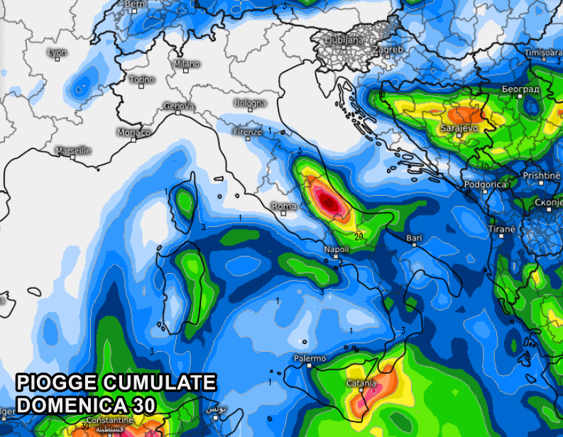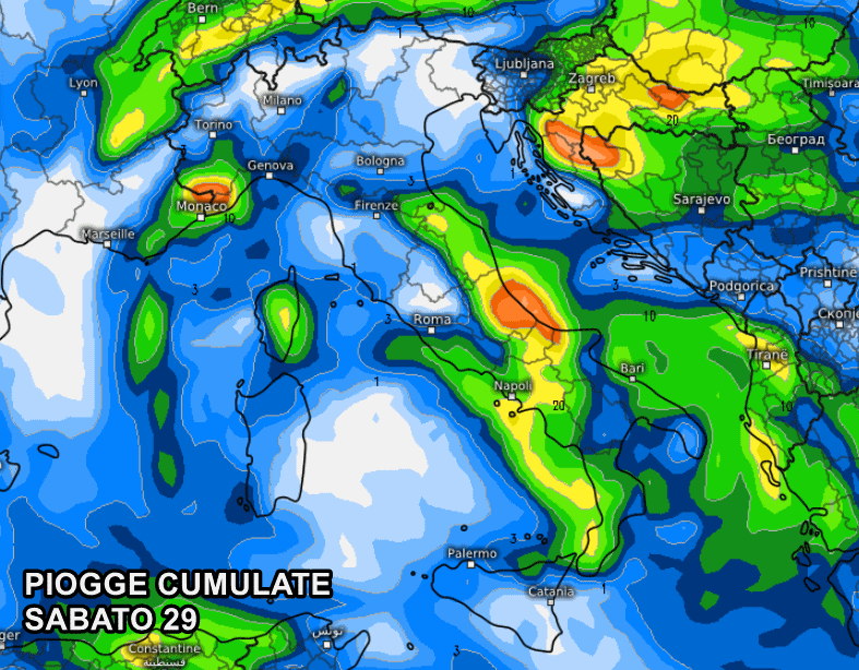 Meteo: tutta la pioggia di sabato 29 e domenica 30