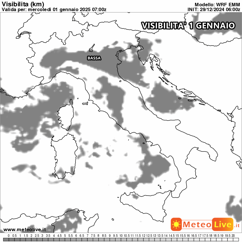 In effetti la nebbia potrebbe essere protagonista nella notte di Capodanno e al mattino su gran parte della Val Padana. Si prevede, al momento, visibilità molto ridotta: