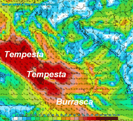 Massima attenzione alla Corsica, la Sardegna e la Sicilia, oltre ovviamente ai bracci di mare circostanti. La mappa evidenzia venti superiori a 100km/h da nord-ovest, una vera e propria tempesta che alzerà onde considerevoli. Di conseguenza sarebbero da evitare le uscite in mare per qualsiasi imbarcazione.