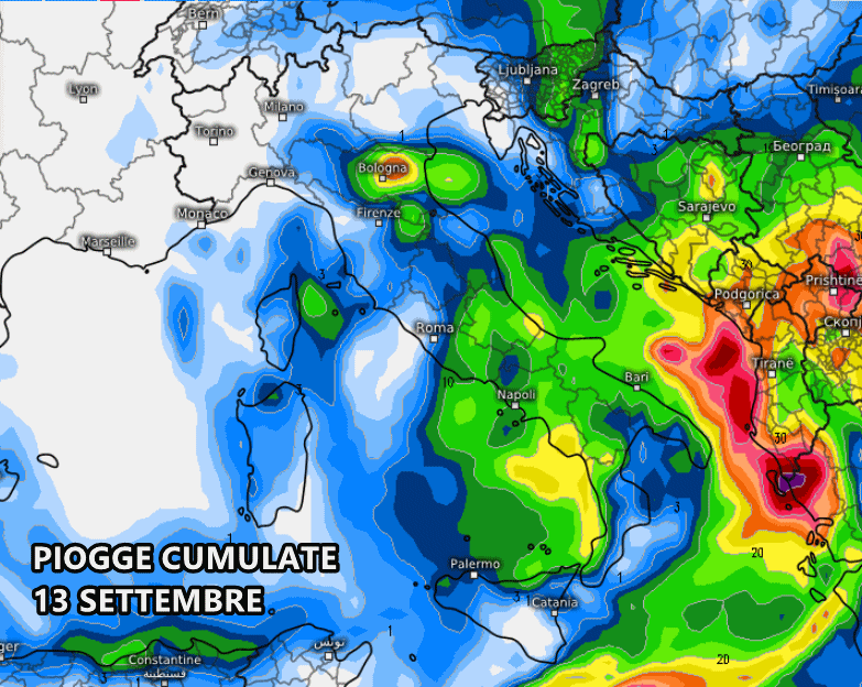 Venerdì 13 il vortice dovrebbe pian piano spostarsi verso sud-est, producendo un netto guasto su tutto il centro sud, con piogge, rovesci e temporali. La ritornante del vortice potrebbe coinvolgere l’Emilia Romagna con piogge persistenti.