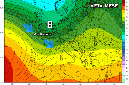 Modelli concordi: da metà mese intensi affondi atlantici nel Mediterraneo