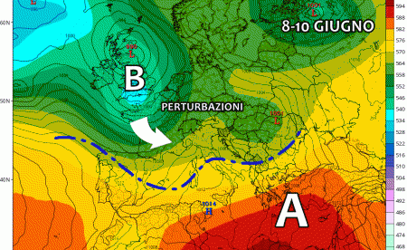 Ma la simulazione modellistica riserva altre sorprese: tra 8 e 10 Giugno spuntano perturbazioni atlantiche maggiormente organizzate, che rischiano di lambire l’Italia a suon di nubi, piogge e temporali. Uno scenario che avrebbe decisamente poco a che fare con il primo mese dell’Estate!