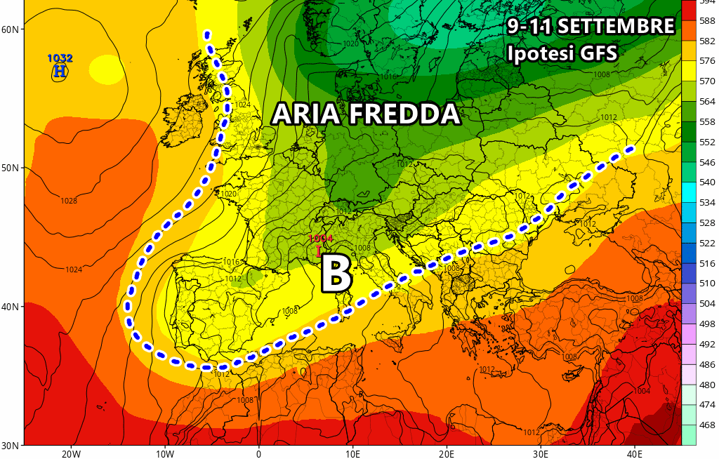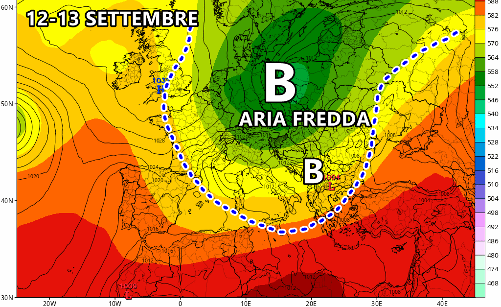 L’affondo decisivo dell’aria fredda potrebbe concretizzarsi tra 12 e 13 Settembre, quando il nocciolo freddo si fionderebbe nel cuore dell’Europa, portando temperature addirittura tardo autunnali.