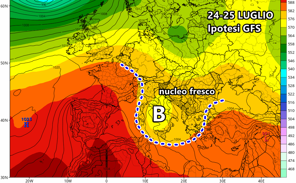 Ma l’occasione più ghiotta per tornare a respirare temperature decisamente più fresche potrebbe arrivare nel corso della prossima settimana, tra 24 e 25 Luglio.