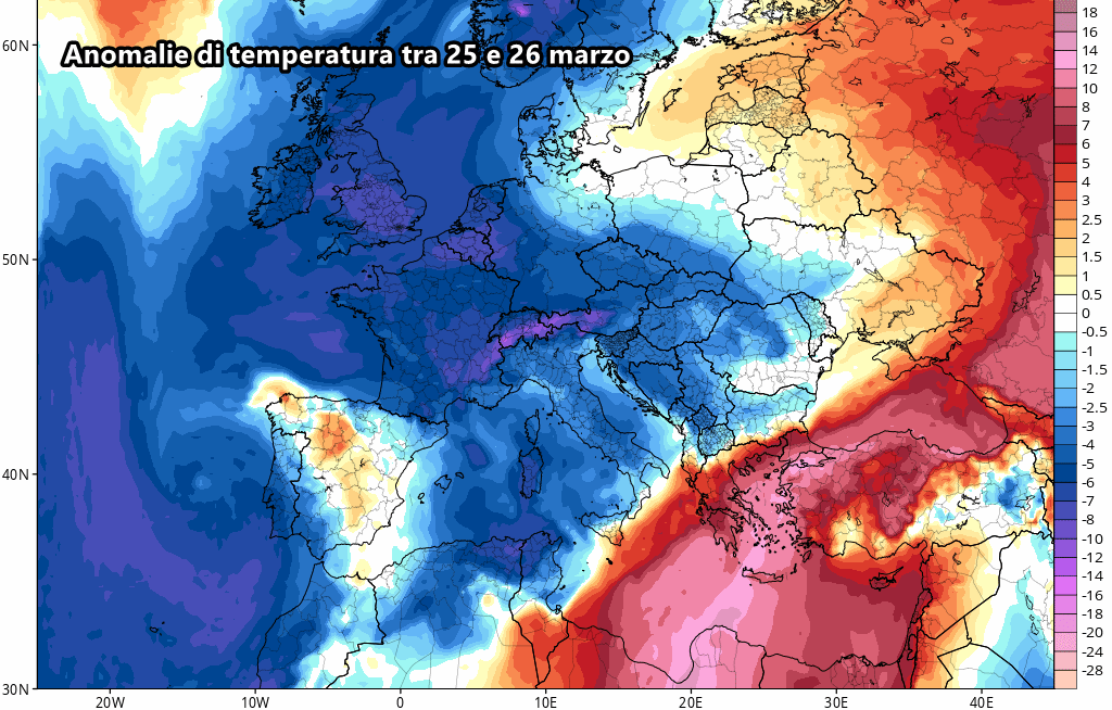 Questa ondata di mitezza, anche abbastanza eccessiva per il mese di marzo, sarà poi prontamente spazzata via dalle correnti più fredde provenienti dal Nord Europa.