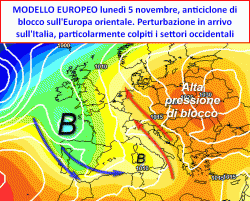 Entriamo ormai nella fase più avanzata dell’autunno meteorologico e dobbiamo fare i conti con un cambio importante di circolazione che influenzerà le condizioni atmosferiche del nostro Paese anche nel futuro. A livello sinottico troviamo infatti una circolazione di bassa pressione sull’ovest Europa, nella quale troviamo inserite diverse ondulazioni corrispondenti ad altrettante perturbazioni con i relativi rami caldi e rami freddi che si alternano reciprocamente. Contrapposta a questa grande figura di bassa pressione, sull’Europa orientale un potente anticiclone di blocco determina ancora condizioni atmosferiche stabili ed impedisce la progressione dei sistemi nuvolosi verso est.
