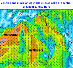 Fase mite e burrascosa tra domenica 10 e martedì 12 dicembre, precipitazioni intense e copiose lungo i versanti tirrenici dell’Appennino. Neve abbondante lungo l’arco alpino occidentale.