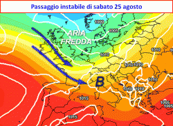 Gli ultimi aggiornamenti sembrano confermare a tutti gli effetti quello che potrebbe essere il passaggio instabile più organizzato dell’intera mensilità. Una perturbazione accompagnata da una mole considerevole di aria fredda nord atlantica attraverserà il continente europeo, portando con sè diversi temporali ed una riduzione del quadro termico generale su valori meno caldi, dando così il via alla fase conclusiva dell’estate. Il modello europeo sembra aver compreso abbastanza bene anche la provenienza di questo impulso instabile che avrá una direttrice prettamente nord-occidentale e quindi mancherà di una fase prefrontale in grado di recare temporali con precipitazioni molto abbondanti. In buona sostanza una perturbazione impetuosa ma che ancora non mette in luce alcun particolare rischio idrogeologico per il nostro Paese.