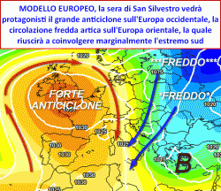 I settori centrali d’Europa ed il nostro Paese verranno a trovarsi a metà strada tra l’essere interessati da una circolazione fredda da nord, oppure mite da ovest, portata dall’anticiclone. L’azione fredda portata dalle masse d’aria artiche sarà limitata ai paesi dell’est Europa ed alla Penisola Balcanica.