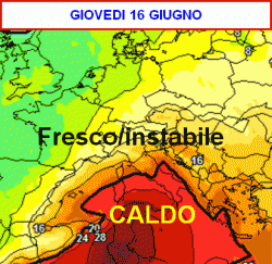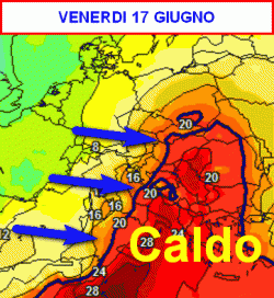 Tra giovedì 16 e venerdì 17 giugno si avranno i massimi effetti (in termini di caldo) al centro-sud e sulle Isole.