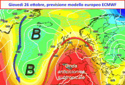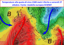 Lunedì 23 ottobre, contestualmente con il rinforzo dell’alta pressione sulla Penisola Iberica, il fulcro dell’attività depressionaria tenderà a migrare verso l’area balcanica, laddove insisterà per diversi giorni a venire. Ne conseguirà una riduzione delle temperature che sul nostro Paese si farà sentire soprattutto sui versanti orientali.