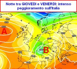 MODELLO EUROPEO: intenso peggioramento sull’Italia tra giovedì e venerdì con FREDDO al nord