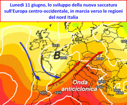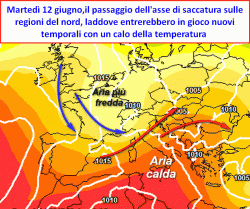 – il secondo passaggio a pochi giorni di stacco dal primo, ricadrebbe nel corso della prossima settimana con temporali diffusi alle regioni del nord (lunedì 11, martedì 12) e poi forse anche sul centro Italia (mercoledì 13, giovedì 14).