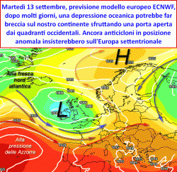 Strada ancora sbarrata alle circolazioni d'aria INSTABILE provenienti dall'oceano, verranno invece privilegiate le dinamiche di natura tipicamente MERIDIANA. In breve quello che dovremo aspettarci nella prima decade di settembre. Una depressione oceanica potrebbe infine far breccia sui settori occidentali d'Europa in seconda decade.