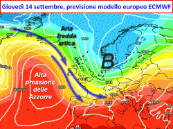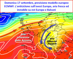 Volgendo lo sguardo a lungo termine e pertanto alla fase conclusiva della seconda decade settembrina, il modello europeo ipotizza l’isolamento della circolazione depressionaria sull’est Europa e sulla Penisola Balcanica, valori elevati di pressione e geopotenziale sarebbero invece previsti su Francia, Iberia e Regno Unito, secondo un pattern che lascerebbe presupporre addirittura una ingerenza instabile portata da correnti orientali fresche.