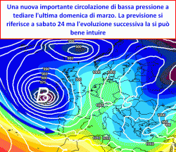 LUNGO TERMINE: una nuova, INTENSA perturbazione viene ipotizzata nell’analisi del modello europeo nel fine settimana tra sabato 24 e soprattutto domenica 25 marzo. Questa previsione necessita ovviamente di ulteriori conferme.