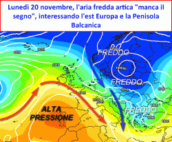 Lo scenario dipinto dal modello europeo ripiega in modo deciso verso una circolazione atmosferica che riporterebbe alla ribalta i venti occidentali alle latitudini meridionali del nostro continente, ma come potremo passare da una circolazione di tipo artico ad una di tipo occidentale? Con l’esordio della terza decade novembrina, il nuovo aggiornamento, perfettamente in linea con le tendenze già evidenziate dalla controparte americana, mette in luce un potente riversamento d’aria fredda di origine ARTICA dalla Penisola Scandinva all’oceano nord Atlantico, laddove confluirebbe all’interno di una vasta ansa depressionaria.