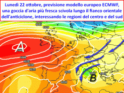 Nei prossimi giorni, il grosso anticiclone previsto sull’Europa occidentale, porterà con sé DUE grandi conseguenze sulla circolazione atmosferica italiana: la prima di queste conseguenze sarà costituita dallo scivolamento di una "goccia" d’aria più fredda lungo il fianco orientale dell’alta pressione con tempo instabile e più freddo in vista soprattutto tra lunedì e martedì sul medio e basso Adriatico. Poi un forte episodio di favonio caldo alpino previsto in Valpadana tra mercoledì e giovedì prossimo, accompagnato da temperature elevate