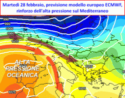 Appare confermato dall’aggiornamento serale del modello europeo, dapprima un interludio anticiclonico foriero di tempo stabile sul Mediterraneo tra domani, lunedì 20 e giovedì 23 febbraio. Addensamenti nuvolosi di tipo basso, potranno tuttavia interessare soprattutto i versanti tirrenici, il contesto delle temperature risulterebbe ovunque assai mite, sia nelle pianure che in montagna.