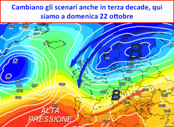 Cambia la previsione anche nelle lunghe distanze; nuove perturbazioni potrebbero minacciare la quiete del Mediterraneo anche nella terza ed ultima decade ottobrina. A livello sinottico potremo osservare delle fasce anticicloniche meno invadenti ed un ribasso del Fronte Polare con due grandi centri di bassa pressione rispettivamente collocati sulla Penisola Scandinava e l’oceano Atlantico settentrionale ad imporre la loro voce sul territorio europeo.